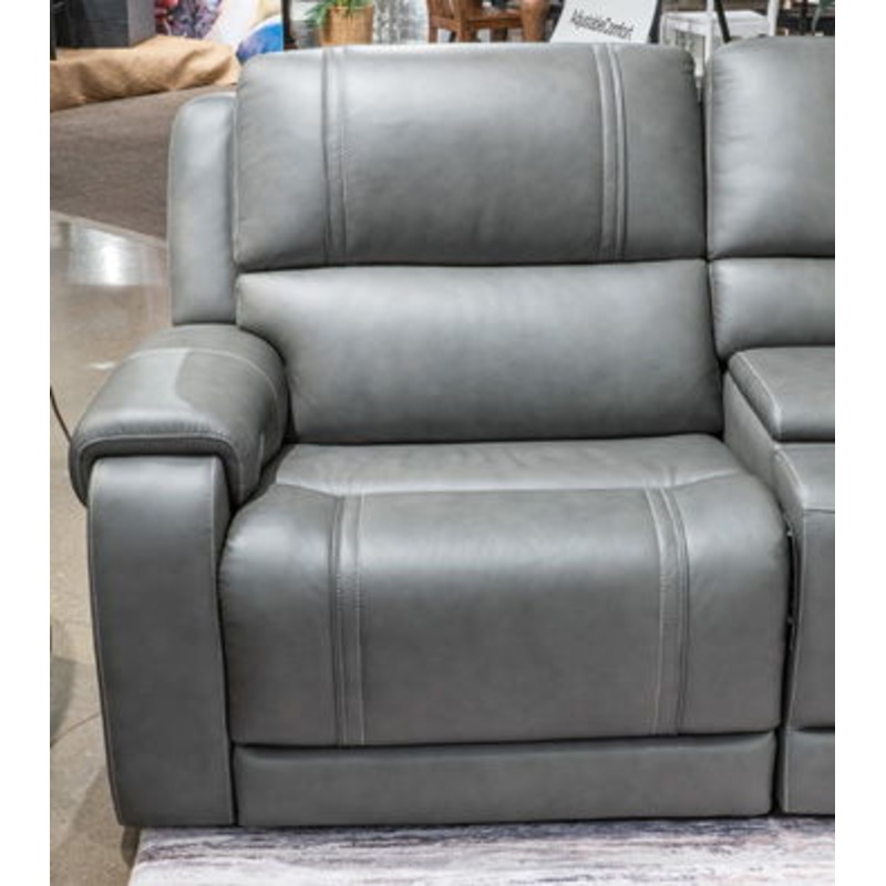 This left-arm facing power recliner is made with a combination of 100% top grain leather and faux leather upholstery. It pairs with other items in the series to make a modular sectional.