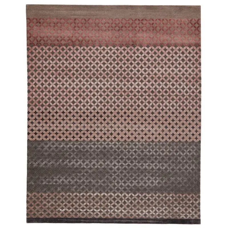 The Aakar collection by Kavi artfully bridges heritage craftsmanship with contemporary design through its innovative reinterpretation of global patterns. The Brumoso rug features an intricate jaali-inspired lattice motif, hand-knotted in a sumptuous blend of eco-conscious bamboo rayon and premium wool. Its unexpected pastel pink and tonal gray palette modernizes traditional architectural references, while the dimensional texture creates captivating light play. This piece masterfully balances cultural authenticity with fresh sophistication, offering both visual intrigue and cloud-like softness underfoot.