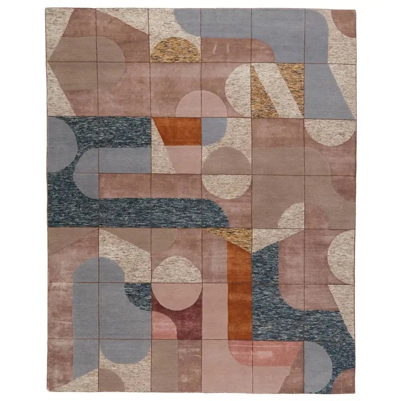 TheAakar Naturalcollection by Kavi reimagines global artistry through a contemporary lens, blending traditional craftsmanship with modern geometric flair. TheMismo 2rug captivates with its bold color-blocked design, where organic shapes intersect in a fresh palette of blush, blue, gold, and gray offering a sophisticated update to mid-century style. Hand-knotted from a sumptuous blend of bamboo-derived rayon and hand-carded wool, this piece balances lustrous sheen with earthy texture, creating a tactile masterpiece for discerning spaces. Perfect for anchoring modern living rooms or eclectic studies, its artisanal quality and unexpected color play prove that heritage techniques can feel strikingly current.