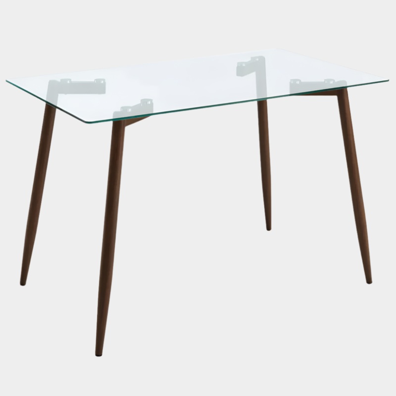 Dining tables are the center of attention in your dining area they hold food and drinks during parties and everyone ends up sitting around them and talking. Dont let your table get the wrong kind of attention, upgrade your dining experience with this table. A rectangular top shape, with a six-person capacity, you can pair it with your choice of chairs! The legs of this piece are crafted from faux walnut (Metal), with a clear tempered glass top, and are perfect for modern or contemporary aesthetics.