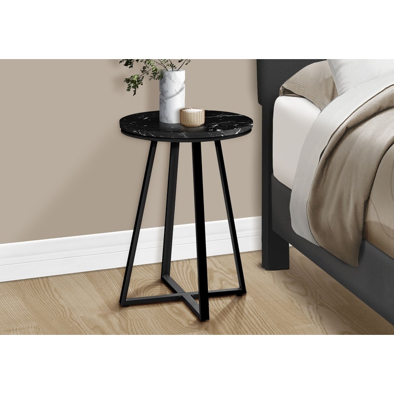 Accent Table, Side, Round Marble Look Contemporary & Modern – Black
