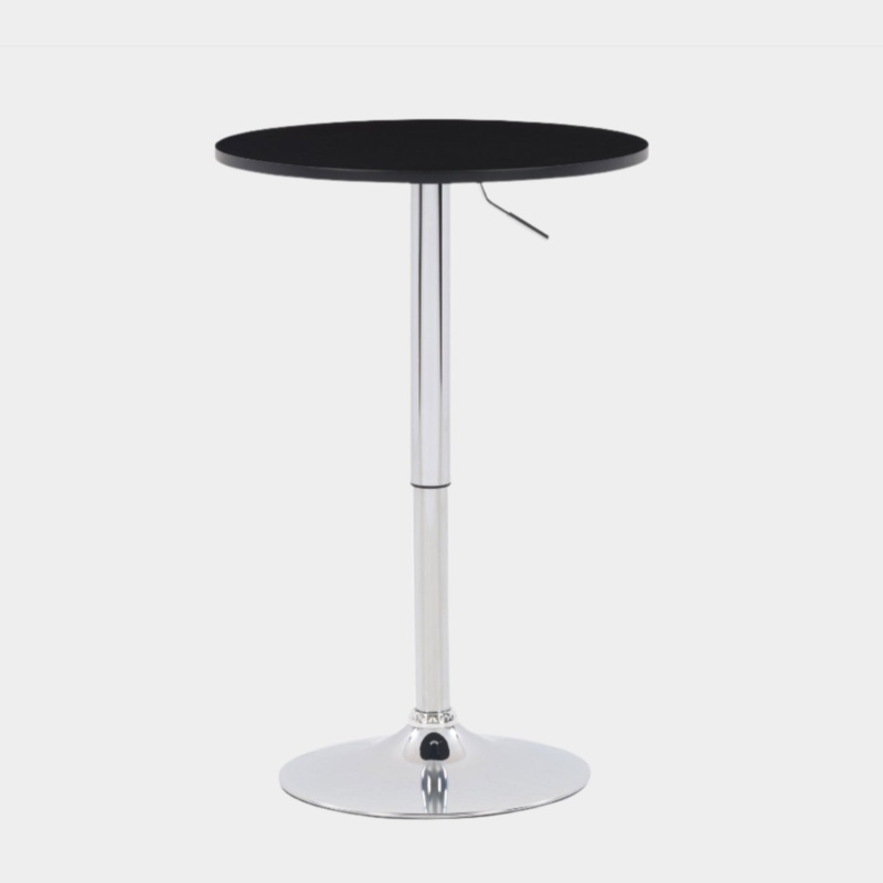 -Bar table with MDF wood top-Hydraulic lift mechanism allows height adjustment and swivelDimensions H27"-37.5" X 23.5''L X 23.5'' WDiameter of base: 17.75"