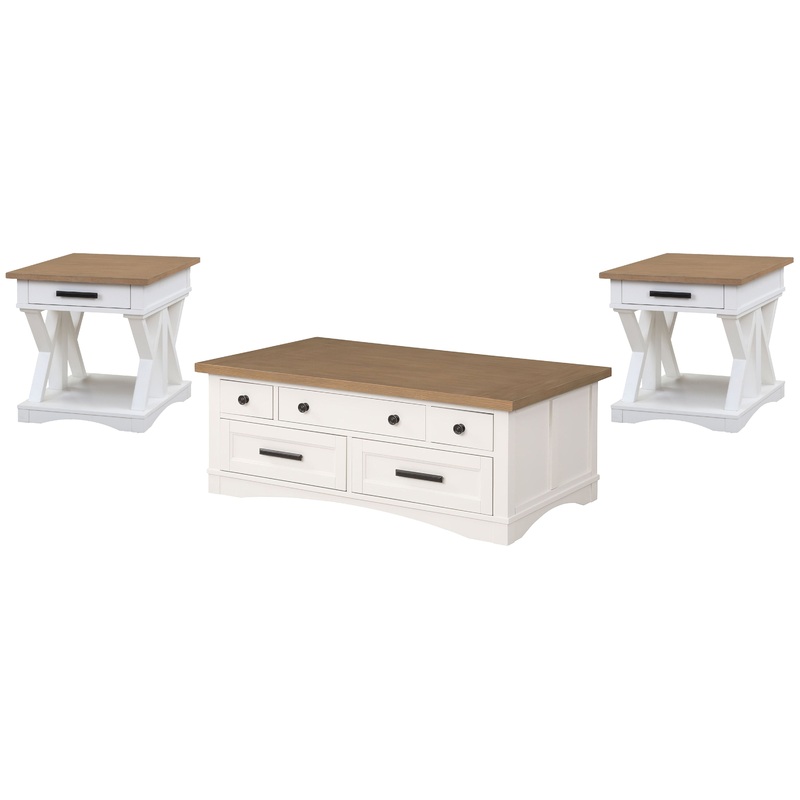 Americana Modern – Lift Top Cocktail Table With 2 End Tables – Cotton