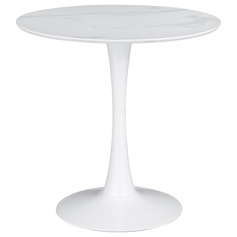 Inspired by classic mid-century design, this round dining table brings timeless elegance to any space. The smooth faux marble top offers a refined aesthetic while providing easy maintenance with a durable polyurethane sealer. A sleek tulip base enhances it