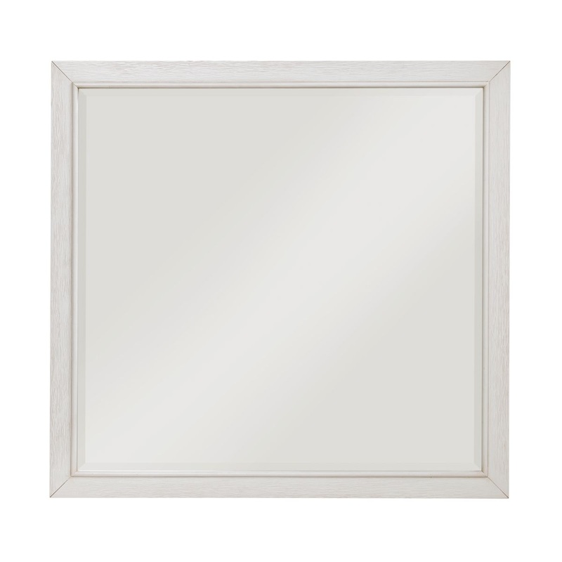 Bold geometrical styling is paired with unfettered modern lines to create the unique design of the Asteria Collection mirror's frame. An antique white finish highlights the collections oak veneer.Product FeaturesMade of oak veneer, wood and engineered wood