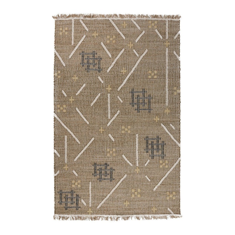 Reminiscent of traditional patterns, this handwoven rug features a sustainable blend of wool, jute, and cotton. Dyed cotton fringe softens each edge while contrasting, natural hues bring an organic vibe to the geometric pattern.