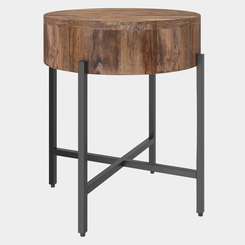 The Blox Round Accent Table combines industrial style with contemporary design. Featuring a sustainable mango wood top with a hand-crafted finish and a black iron cross-base, its both sturdy and stylish. Perfect as an end table in the living room, hallway,