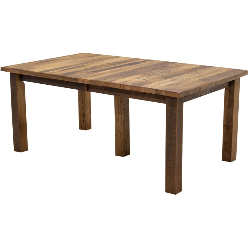 The Bradford Extending Dining Table features a 1.5″ thick, reclaimed barnwood top with hand worn corners. The Amish dining table has self-storing leaves and it extends easily with gear slides. The planks run lengthwise on a table without leaves The planks run widthwise on a table with leaves. For more info, contact us at .