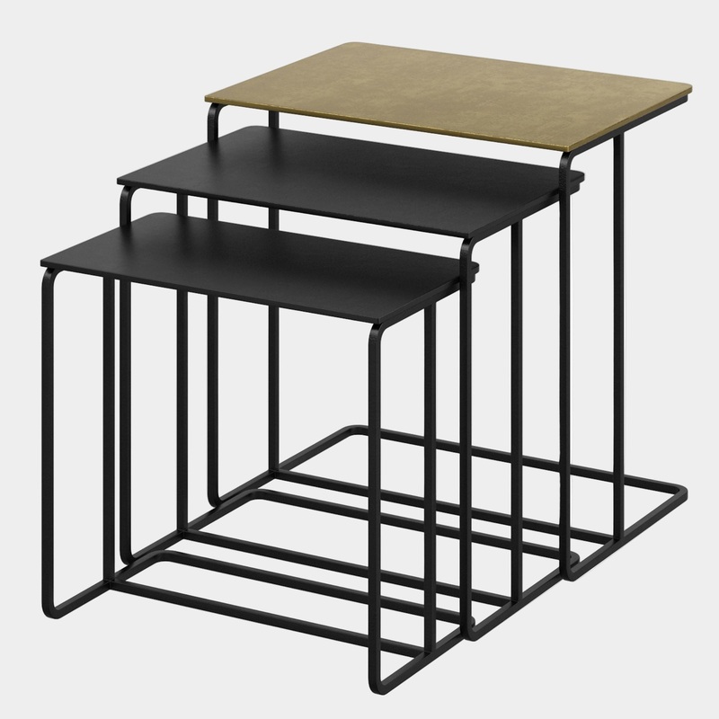 Elevate your space with the Bristol 3pc Accent Table Set, featuring industrial-chic nesting tables with unique cast aluminum tops. The larger table is finished in antique gold, creating a striking contrast with the black accents. Perfect for living rooms,
