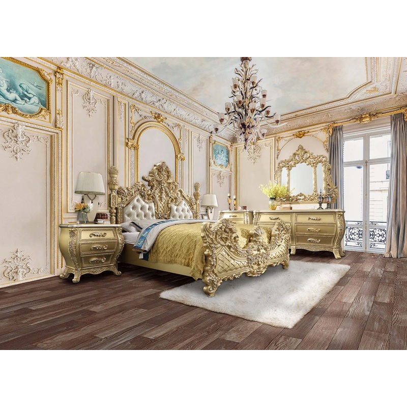 Cabriole – Eastern King Bed – GoldCabriole – Eastern King Bed – Light Gold PU & Gold Finish92.0″W x 90.0″D x 80.0″H – 311.0 lb