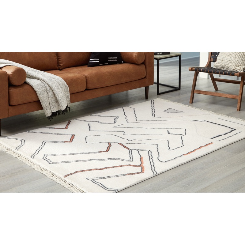 sku : R405812InformationIn a mesh of neutral tones, this accent rug features a modern abstract design that will warm your living space. Freeform lines with a knotted tassel edge elevate the look, and the medium pile height adds just the right amount of cus