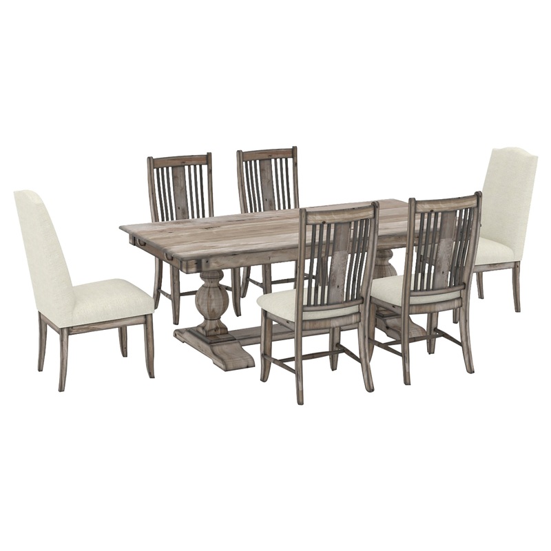 The Canadel Champlain 4280 Heritage Nature Dining Set is a prestigious design defined by an artfully distressed wood finish on solid birch. This set includes the Champlain 4280 dining table, a wonderfully elegant statement piece with fine details on the ba