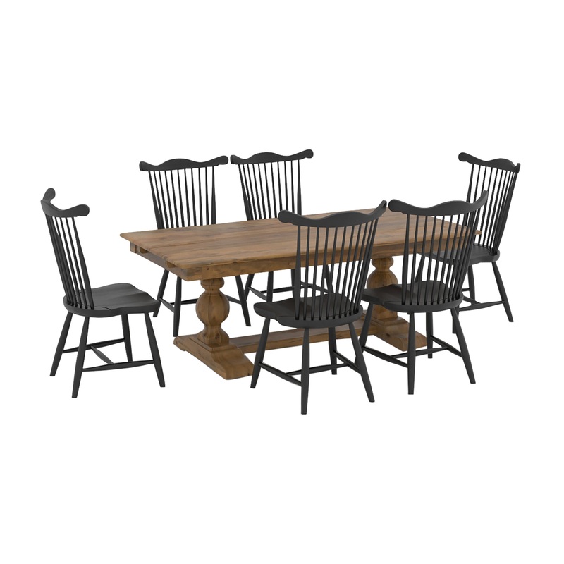The Canadel Champlain 4280 Oak Washed Dining Set is a refined design that impresses with complementary wood finishes for the table and chairs. This set is anchored by the Champlain 4280 table, boasting solid wood construction with artfully shaped pedestals and edge detailing. The table is coupled with six 5162 dining chairs, featuring a timeless black wood stain with an intriguing antique finish. The Canadel Champlain 4280 Oak Washed Dining Set will delight family and friends alike with charming style and impeccable quality.