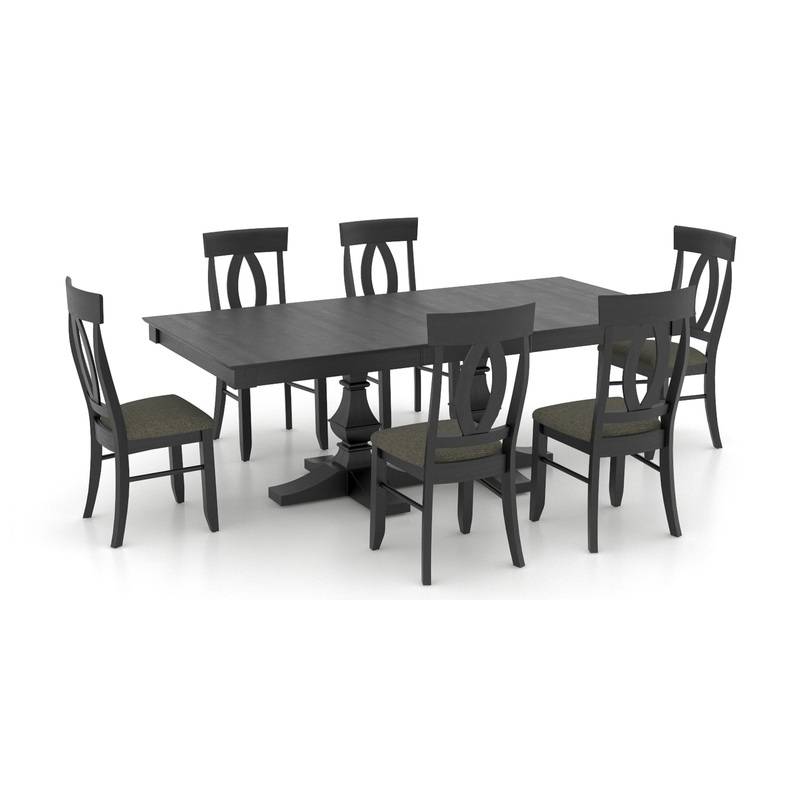 The Canadel Core 4268 Dining Set invites you to relax and entertain in impeccable style and comfort. This dining set features the stately Core 4268 table with impressively detailed legs and an included leaf to accommodate even the largest gatherings. The table is complemented by six Core 0100 chairs with upholstered seats for comfort in a versatile grey finish.
