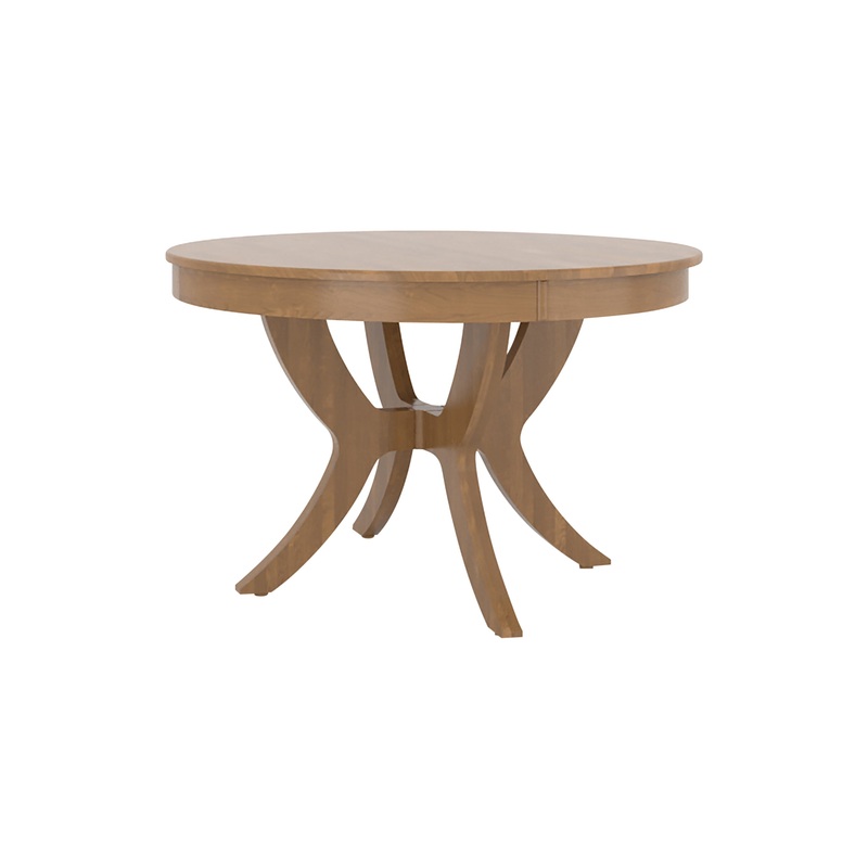 The Canadel Core Dining4848 Table withSI base features a round sturdy wooden table top and pedestal support base.The shape, height, size, top colour, body colour, finish, legs/pedestal and top edge of this contemporarydining table can be personally selected to matchto your decor and design taste.
