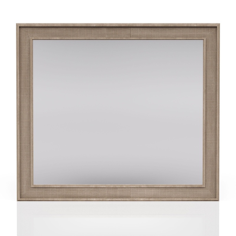 Beveled Glass: Enhances the elegance and depth of the mirror.Sand Colored Finish: Adds a warm and inviting touch to any room.Rubberwood Frame: Provides durability and a natural look.Dresser Mounted: Perfect for bedroom or as a statement piece in living are