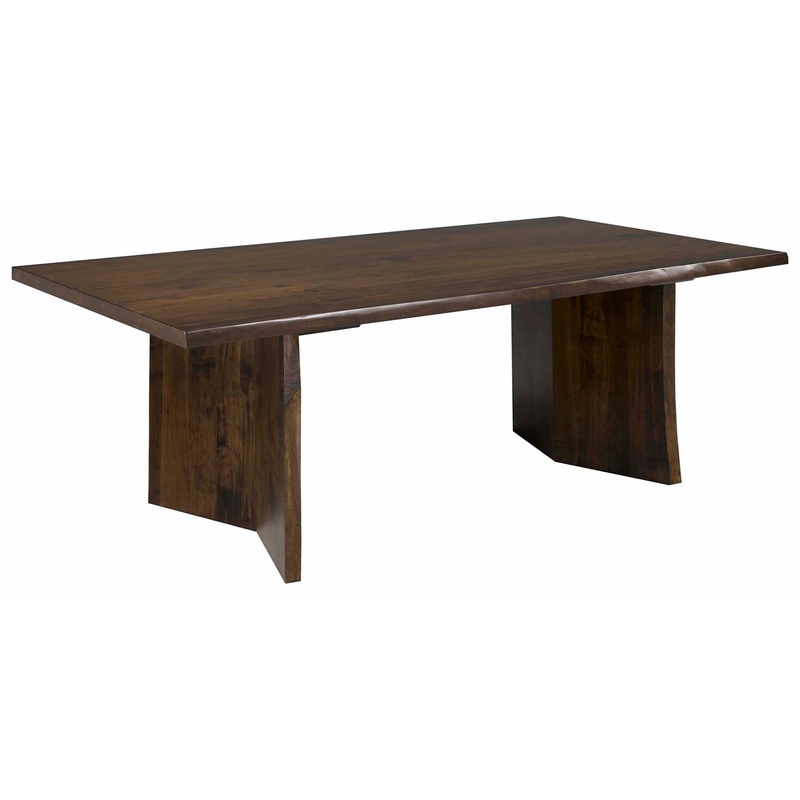 The Cardinal Woodcraft Arcadia Dining Table commands attention with modern styling wedded to gorgeous wood graining running the length of the piece. The Arcadia table’s artfullyangled legs complete the modern yet timeless aesthetic. This dining table can be customized to your decor and design taste.