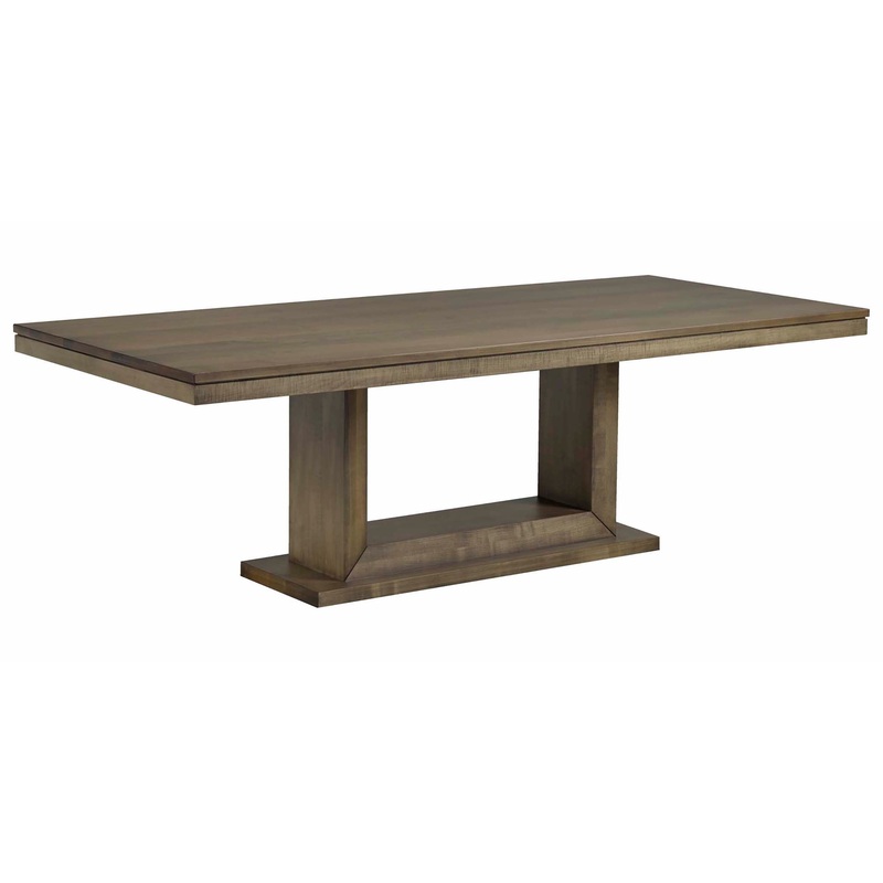 The Cardinal Woodcraft Fairbanks Dining Table is a distinguished contemporary piece thatimpresses with clean, geometric lines. The Fairbanks table's angular double pedestal base features an eye-catching use of negative space. This dining table can be custo
