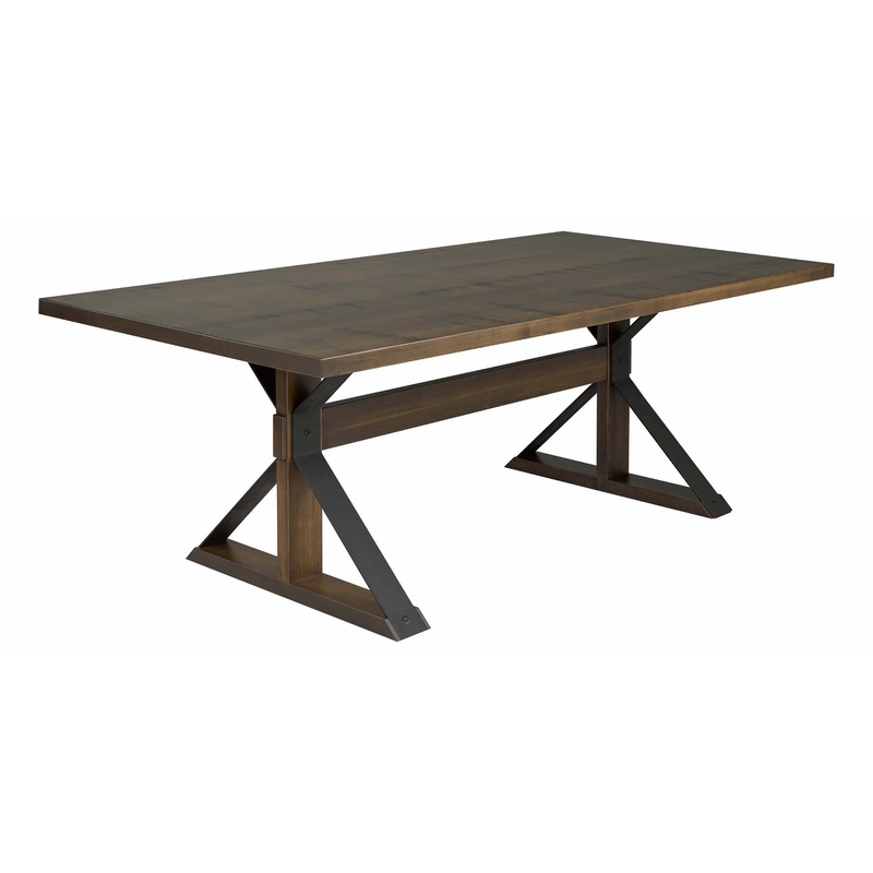 The Cardinal Woodcraft Moorhouse Dining Table is a timeless design that couples a classic silhouette with clean, angular lines. The Moorhouse table's metal accents add a pop of industrial energy to the double pedestal base.This dining table can be customiz