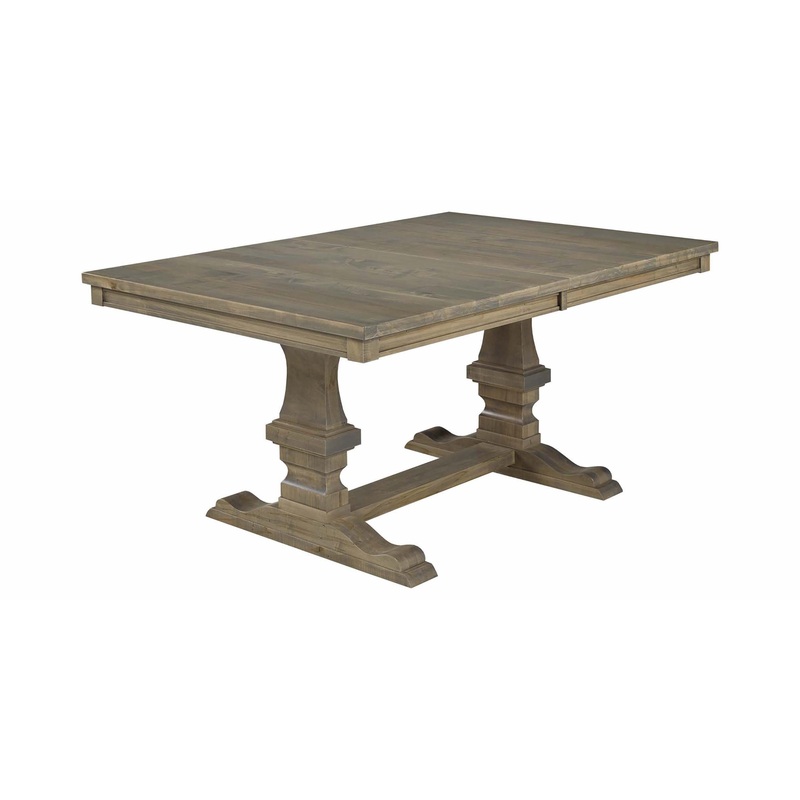 ThePersiantableis availablein solid top or centre extension configurations, with your choice of 10 wood species, 40 wood finishes and 4 top textures. The solid top configuration includes 2 widths and 4 depths, while the centre extension configuration comes in 2 widths and 4 depths. The centre extension configuration accommodates leaf storage,incorporating 48″ leaf opening and 3 leaf widths.