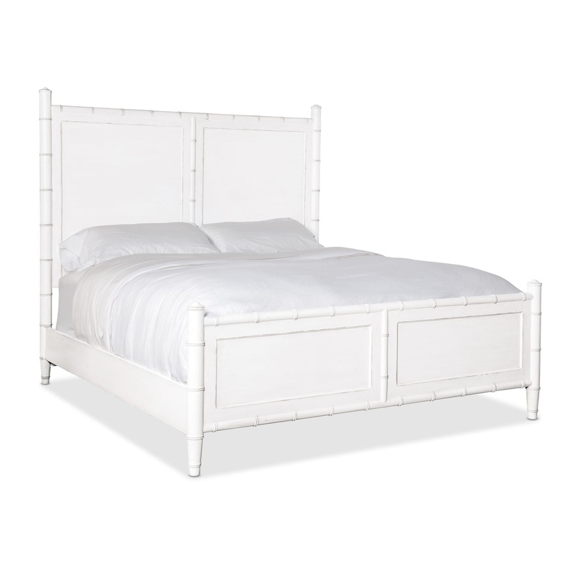 Inspired by the tropical craftsmanship of the West Indies and the cane accents of the classic British and Dutch Colonial design periods, the Charleston Panel Bed is an oasis of renewal for your bedroom space. The headboard and footboard have bamboo-motif trim and bamboo posts on the ends. The wood headboard, footboard and side rails are finished in White Heron, a softer interpretation of the classic Southern limestone white with a slightly brighter sheen, delivering an heirloom-quality finish. Headboard can be used alone.