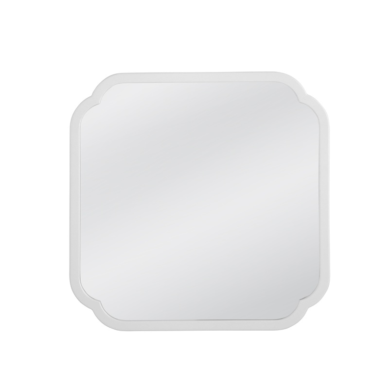 The Clover Wall Mirror is an ideal accent to brighten your space, featuring a white lacquered mirror frame for a playful touch. Its scalloped corners offer a fun twist on the traditional square shape, adding character to any room.Product FeaturesBlends mod