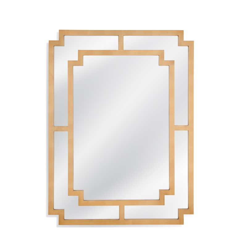 The Connor Wall Mirror boasts a clipped corner design that subtly nods to a modern Chippendale aesthetic. With a brushed gold finish and a window-pane style mirror, it adds a touch of sophistication to any space, blending traditional style with timeless elegance.