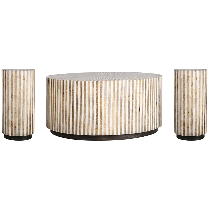 A natural fit for urban and suburban home dcor, the Downtown round cocktail table offers a casual luxury with a youthful, slightly Boho vibe. Organic yet refined this 38 inch diameter table is made from mango wood and bone inlay in a beautiful radial patte