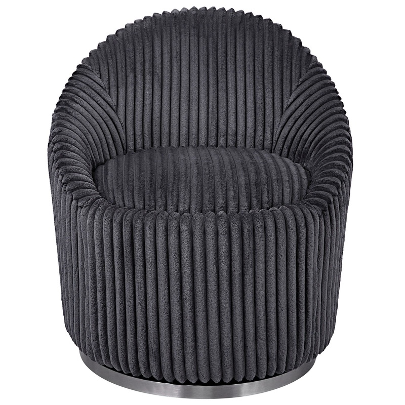 A Contemporary Accent With A Modern Edge, This Chair Is Upholstered In A Luxurious Fluted Gunmetal Chenille Fabric And Is Accented By A Stainless Steel Swivel Base Finished In Brushed Nickel.Product FeaturesUttermost's Accent Chairs Combine Premium Quality