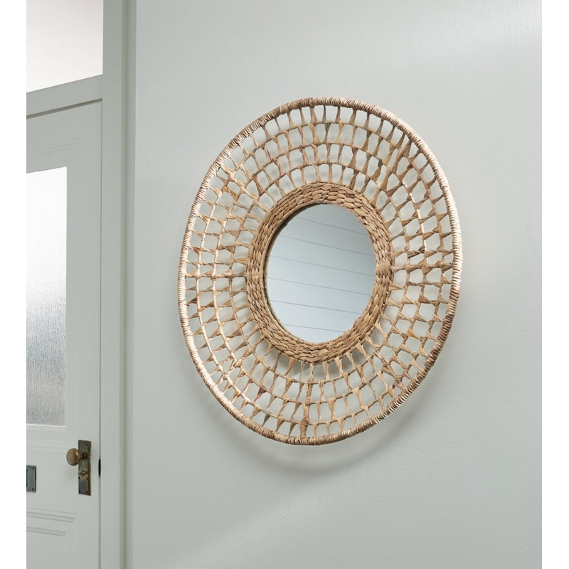 sku : A8010366InformationBring some boho-chic style into your home with this round accent mirror. Made with natural water hyacinth, it features a stunning wicker border woven in various designs to create a charming focal point for any space.FeaturesMade of