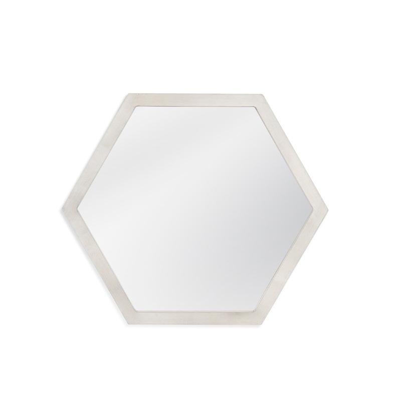 Simplicity is the hallmark of elegant design! The Dunn wall mirror features a modern hexagonal shape with a vintage antiqued true precious metal Silverleaf finish. The juxtaposition of a modern profile with a vintage finish delivers design versility th