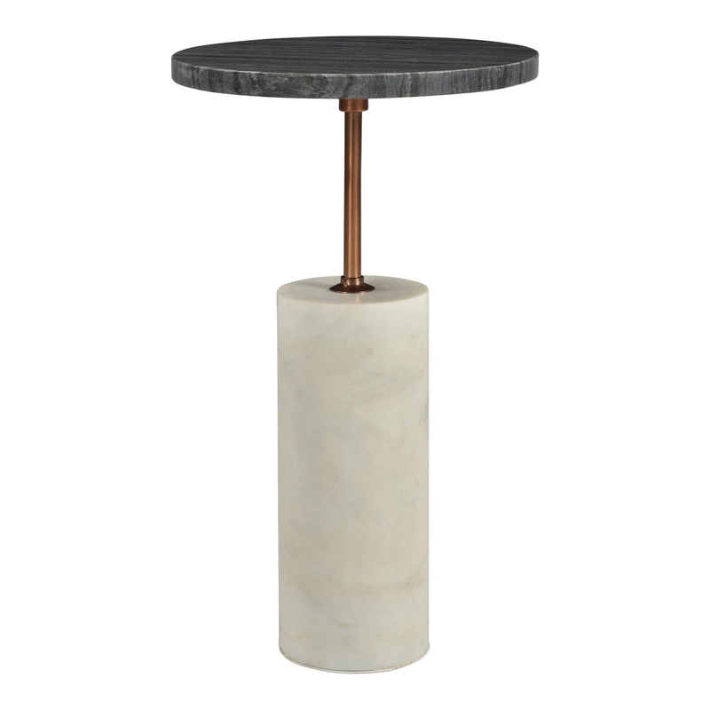 A mix of black and white marble, the Dusk accent table brings together contemporary modern design with minimalism and structure-play. This table is versatile and unique with a stunning white marble base, a brass-finished iron post, and moody grey marble to