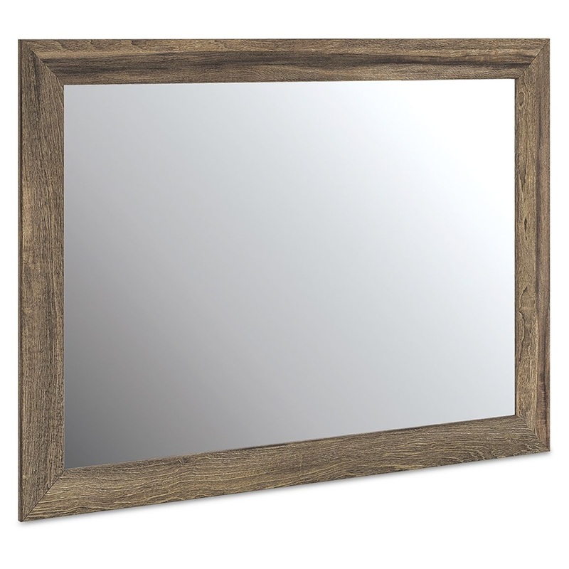 Casually cool style and clean lines go hand in hand with this bedroom mirror. A weathered brown finish over replicated oak grain creates an easygoing vibe, setting the scene in your restful retreat. The fuss-free, versatile piece can be mounted on a wall o