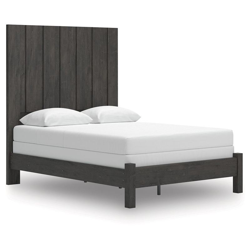 Find serene simplicity in the clean lines and dark neutral tones of this queen panel bed. Its a sincere approach to modern elegance, giving you high style at a great value. Vertical planks decorate the generously scaled headboard to give the illusion of ad