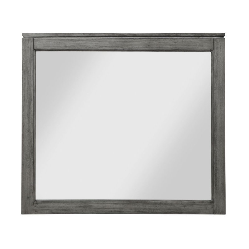 The Garretson Collection blends transitional lines with rustic styling to create an elegant addition for your bedroom. The distinct grain of the mirror frames okume veneer features a gray finish while the picture frame molding lends classic accent to your