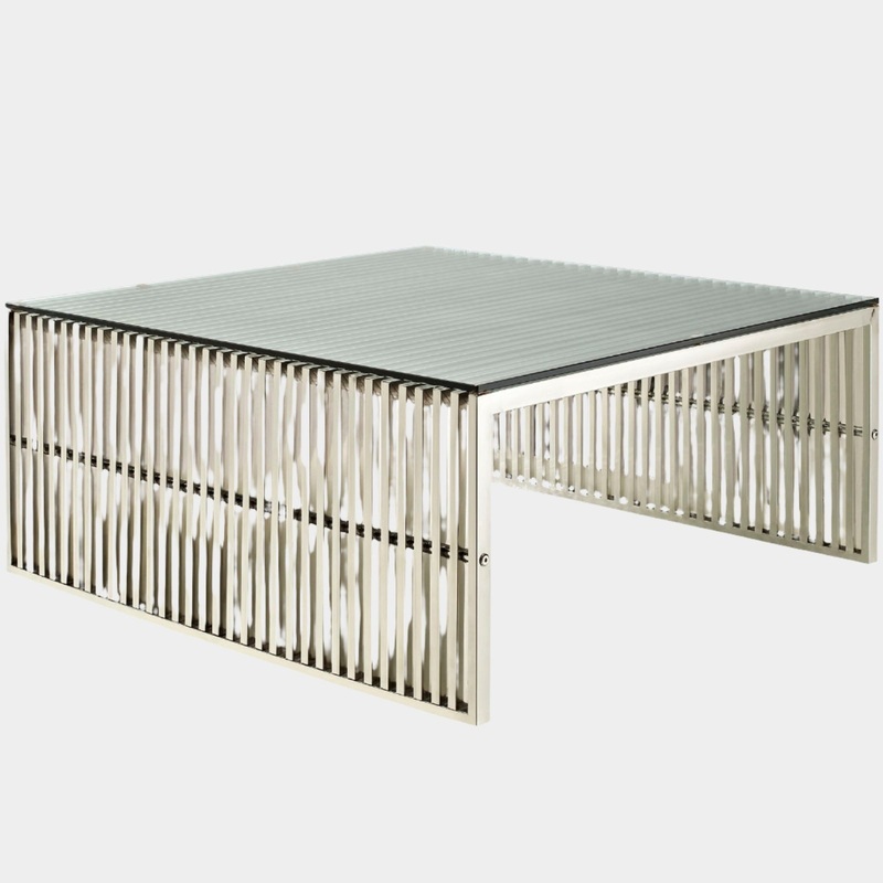 Tempered glass table-top with a stainless steel tubing base, this coffee table is a suitable centrepiece.Dimensions:17'' H x 48'' W x 24'' D