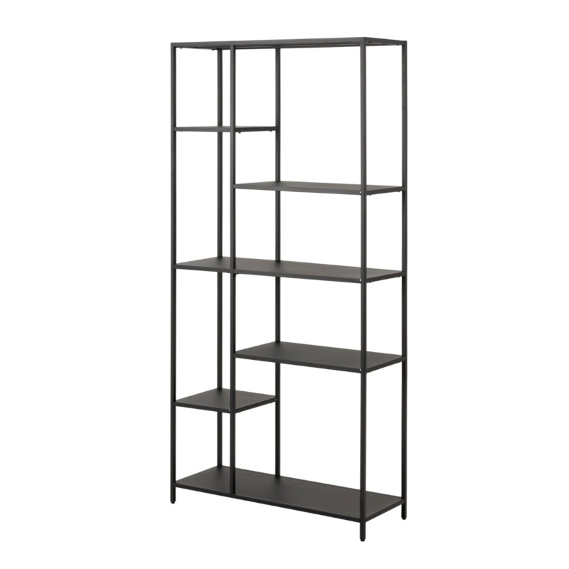 Nuka grmatu skapisrmis, 6 plaukti un matts melns rupj pulverkrsots traudsar asimetrisku detau79,5x30x165 cm