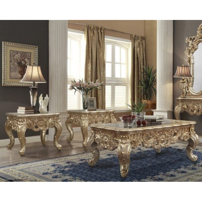 HD-998G – 3 Piece Coffee Table Set – Gold With Rust Highlights