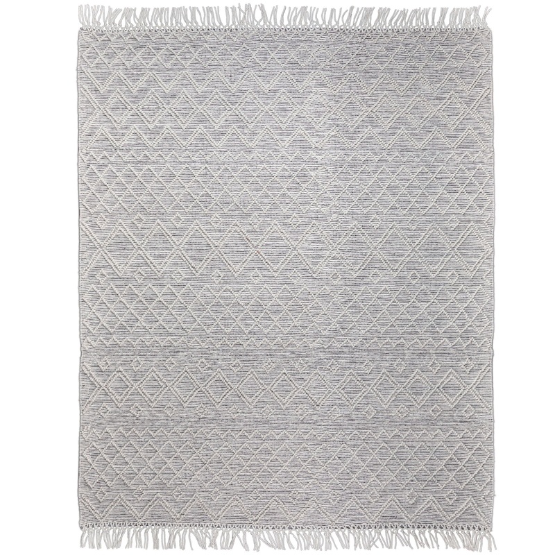 Design and Colors: This rug features a detailed diamond pattern, complemented by a hand-knotted fringe, offering a stylish and elegant appearance.Construction: With a durable hand-woven construction, this rug is designed for longevity, making it a reliable