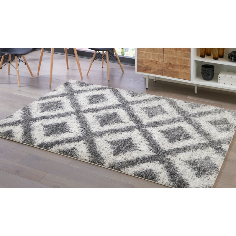 Add contemporary charm to your living space with the style and comfort of this shag rug. The machine-woven rug features a soft, shaggy pile in cream, gray and charcoal tones. With its timeless diamond trellis pattern design, this easy-elegant area rug is right on trend. Whether your style is contemporary or classic, its simply chic aesthetic goes with the flow.