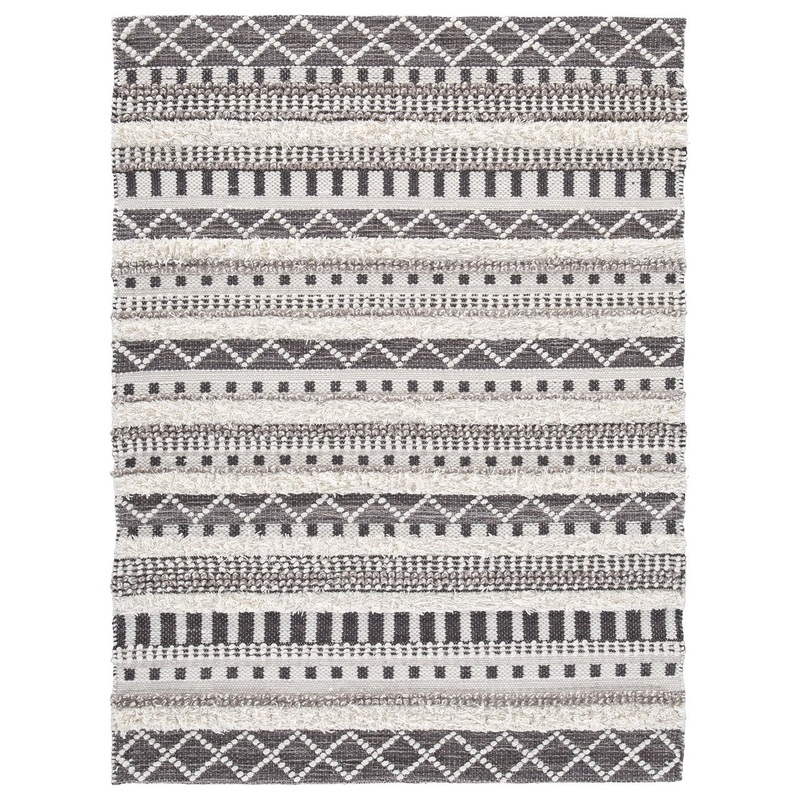 Stay on trend with tribal chic. This area rug is just neutral enough to work with your decor and just cool enough to keep your space hip. Decorate again and again on top of this dynamic floor covering; the ivory, brown and natural geometric design work so