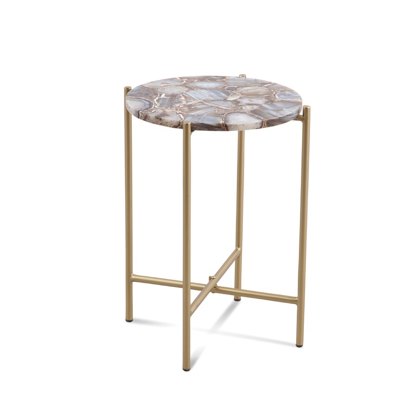 The Lonna Accent Table combines elegance and contemporary design with its stunning agate stone top and sleek gold-finished iron frame. This small yet impactful piece brings a touch of luxury and natural beauty to any room, making it a perfect addition to y