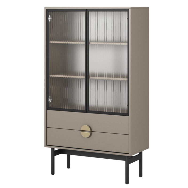 LOON vitrna ar uniklu dizainu labi iedersies modern interjer. T ir izgatavota no augstas kvalittes lamintas skaidu pltnes, kas nodroins ilgu un nevainojamu lietoanu. Ts raksturu paspilgtina masvais rmis no melna trauda, kas ne tikai pieir mbelei izturbu, bet ar pieir tai industrilu armu. Savukrt zelta rokturi, kas veido apli, ir ne tikai praktisks elements, kas atvieglo atvranu, bet ar pieir eleganci un smalku armu visam skaptim. neliel, bet izsmalcint detaa izce mbeles, pieirot tm nedaudz greznuma. Skaptis ir veidots, domjot par funkcionalitti, tpc taj ir atvilktnes mazkiem priekmetiem un aizsldzama daa ar plauktiem dekorcijm, imenes piemim vai mini bibliotkai. Vl viena priekrocba ir stikla priekpuse, kas izgatavota no rievota dekoratv stikla, kas pieir vieglumu un eleganci. Neparasts krsas sasple ar melno rmi un zelta rokturiem veido harmonisku un modernu veselumu, kas lieliski iedersies dados interjera dizainos, pieirot tiem uniklu raksturu. mbele ir ne tikai praktisks uzglabanas risinjums, bet ar dizaina elements, kas izdaios un izcels jebkuras telpas individulo stilu.