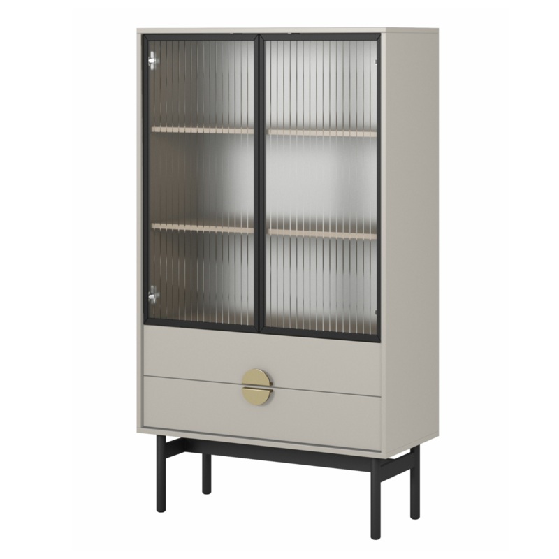 LOON vitrna ar uniklu dizainu labi iedersies modern interjer. T ir izgatavota no augstas kvalittes lamintas skaidu pltnes, kas nodroins ilgu un nevainojamu lietoanu. Ts raksturu paspilgtina masvais rmis no melna trauda, kas ne tikai pieir mbelei izturbu, bet ar pieir tai industrilu armu. Savukrt zelta rokturi, kas veido apli, ir ne tikai praktisks elements, kas atvieglo atvranu, bet ar pieir eleganci un smalku armu visam skaptim. neliel, bet izsmalcint detaa izce mbeles, pieirot tm nedaudz greznuma. Skaptis ir veidots, domjot par funkcionalitti, tpc taj ir atvilktnes mazkiem priekmetiem un aizsldzama daa ar plauktiem dekorcijm, imenes piemim vai mini bibliotkai. Vl viena priekrocba ir stikla priekpuse, kas izgatavota no rievota dekoratv stikla, kas pieir vieglumu un eleganci. Neparasts krsas sasple ar melno rmi un zelta rokturiem veido harmonisku un modernu veselumu, kas lieliski iedersies dados interjera dizainos, pieirot tiem uniklu raksturu. mbele ir ne tikai praktisks uzglabanas risinjums, bet ar dizaina elements, kas izdaios un izcels jebkuras telpas individulo stilu.