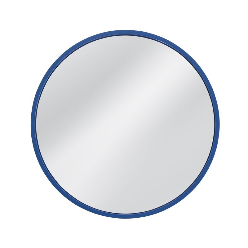 The Lyra Wall Mirror features a simple round design with a sleek resin frame finished in a bold blue hue. The clean lines and vibrant color make it a striking piece that adds a modern touch to any room. Its minimalistic design allows it to blend effortless