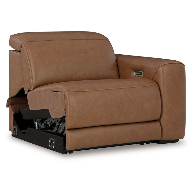 This right-arm facing power recliner is made with leather and faux leather upholstery. It pairs with other items in the series to make a modular sectional.