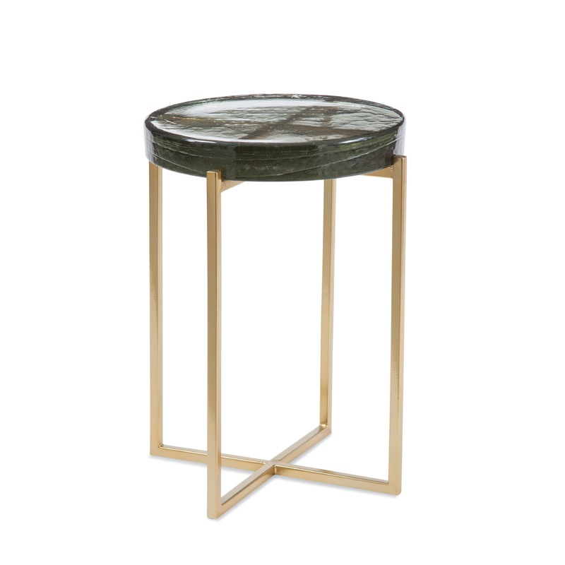 • Round cast glass top with unique textures and details