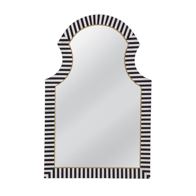 The Martens Wall Mirror showcases a modern boho aesthetic with its captivating arched design and elegant black and cream bone frame. This eye-catching piece adds a touch of sophistication and charm to any space, effortlessly blending contemporary style wit