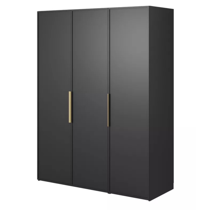 Trsdurvjuskapis MEFRA ir elegants un stilgs risinjums, kas bs lieliska alternatva garderobei. T minimlistiskais dizains lieliski iederas gan modern, gan klasisk interjer. Viss korpuss ir izgatavots no augstas kvalittes lamintas skaidu pltnes, kas garant izturbu un viegli trmu. Skapju fasdm ir smalka apdare, kas pieir tm trsdimensiju un interesantu vizulo efektu. Priekpus iriegarens rokturis, kas izgatavots no matta trauda, kas pieir izsmalcintu izskatu un kontrast ar mattu korpusu. Garderobes interjers ir veidots t, lai taj vartu ievietot dadus aprba elementus.Sliede auj pakrt drbes,lai ts btu lab stvokl, savukrt augjais plaukts auj uzglabt retk lietotu aprbu vai aksesurus.Konteiners ar divm atvilktnmnodroina papildu vietu nelielu aksesuru vai apakveas glabanai, kas nodroina lielku krtbu garderob.Kolonna ar plauktiemauj efektvi irot aprbu un aksesurus. Klasisk krsa pieir telpai eleganci un stilu, bet pieklusints krsas lieliski harmonizjas ar dadiem dekoratviem stiliem. Skapis ir ne tikai funkcionls interjera elements, bet ar esttisks akcents, kas telp var ienest msdienguma un klases pieskrienu.Komplekt ir divi rokturi – zelta un melna, lai js vartu izlemt, kur no tiem labk atbilst jsu interjeram. Varat ar maint rokturi, mainot interjera dizainu, nenomainot mbeles.