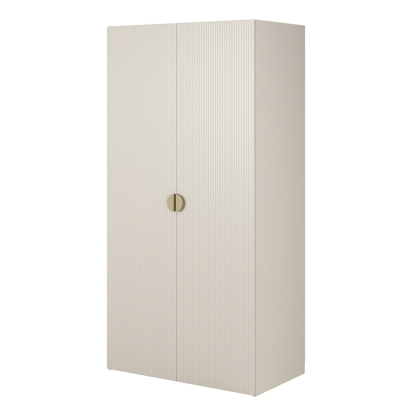 MOON divdurvju skapis ir elegants un stilgs risinjums, kas bs lieliska alternatva garderobei. T minimlistiskais dizains lieliski iederas gan modern, gan klasisk interjer. Viss korpuss ir izgatavots noaugstas kvalittes lamintas skaidu pltnes, kas garant izturbu un viegli trmu. Garderobes fasdm irsmalkas lameles, kas pieir tai smalku tekstru un interesantu vizulo efektu. Priekpus irzeltains, pusapaas rokturis, kas izgatavots no matta trauda, kas pieir izsmalcintu izskatu un kontrast ar mattu korpusu. Atkarb no jsu vajadzbm varat izvlties jebkuru interjera konfigurciju, lai pielgotos dadiem aprba priekmetiem.Sliede auj pakrt drbes,lai ts btu lab stvokl, savukrt augjais plaukts auj uzglabt retk lietotus aprbus vai aksesurus.Konteiners ar divm atvilktnmnodroina papildu vietu nelielu aksesuru vai apakveas glabanai, kas nodroina lielku krtbu garderob.Kolonna ar plauktiemauj efektvi irot aprbu un aksesurus. Klasisk krsa pieir telpai eleganci un stilu, bet pieklusints krsas lieliski harmonizjas ar dadiem dekoratviem stiliem. Skapis ir ne tikai funkcionls interjera elements, bet ar esttisks akcents, kas telp var ienest msdienguma un klases pieskrienu. Komplekt irdivi rokturi – zelta un melna, lai js vartu izlemt, kur no tiem labk atbilst jsu interjeram. Varat ar maint rokturi, mainot interjera dizainu, nenomainot mbeles.